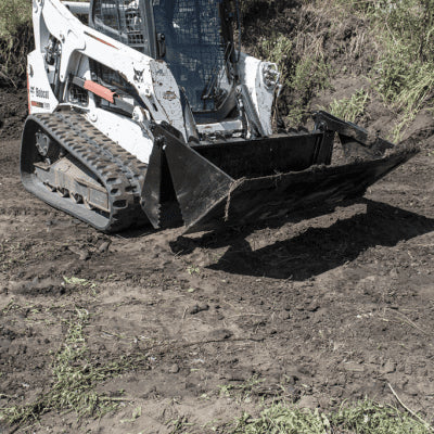 Our Conserv machinery 4-in-1 Bucket is one of the most versatile attachments money can buy. Engineered to function in even the most extreme working conditions, it can be used for grading, land leveling, dozing, grappling, digging, and pulling, as well as many other applications. This bucket is durable enough for any job due to the reinforced bucket and sides, as well as its 3/4” thick bolt-on reversible cutting edge for dozing.