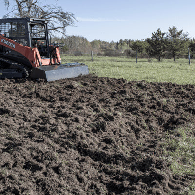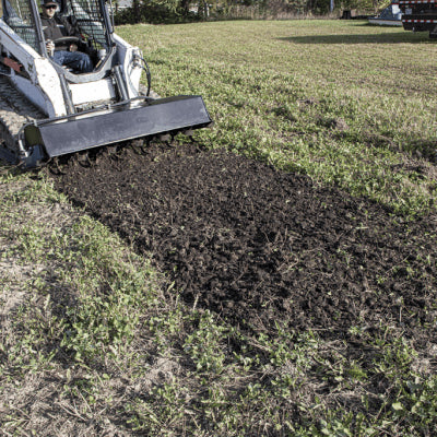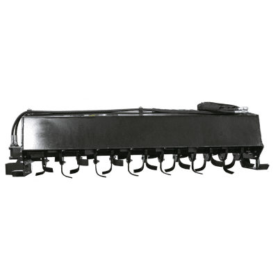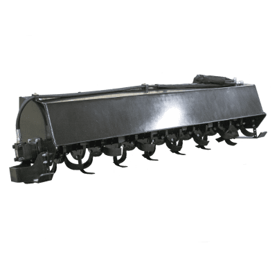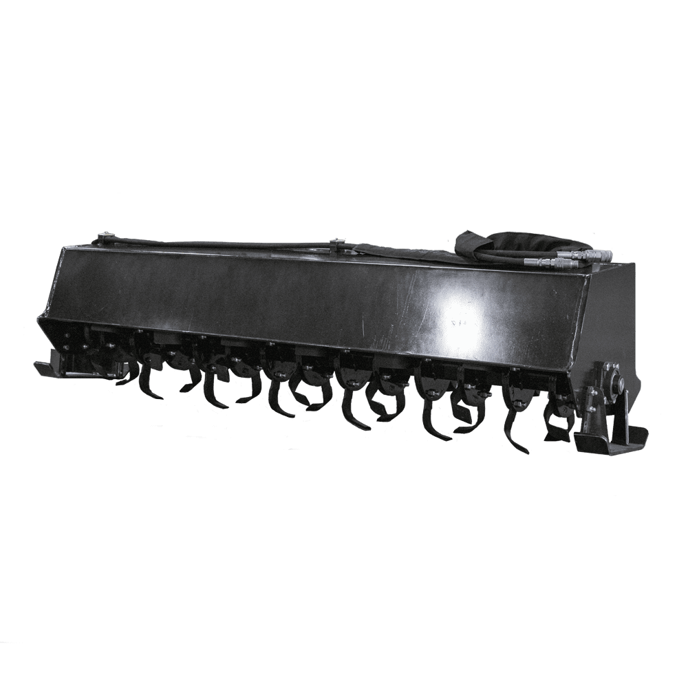 The bidirectional motor saves you time and effort with its ability to rotate the tines backward or forwards, allowing you to pulverize the soil in one single pass without disturbing the soil a second time. The adjustable shoes make the Conserv machinery Tiller incredibly versatile in a lot of applications, as they allow you to quickly set the digging depth up to 6”. It operates on standard flow (15-24 gallons per minute), and is available in 6’ & 7’ lengths. Request a quote now and let’s dig in!
